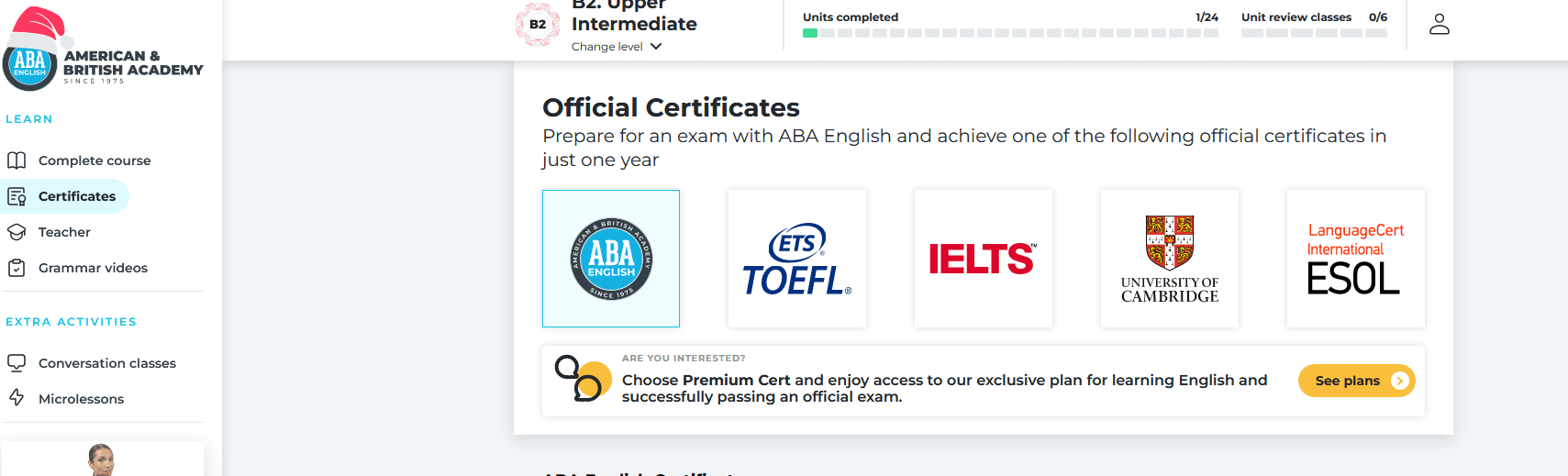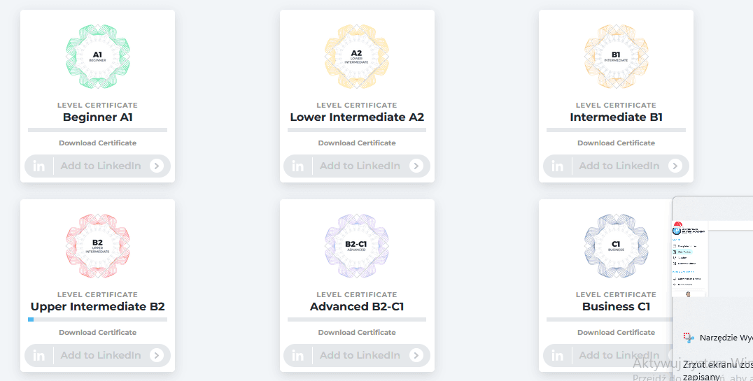 - Przygotowanie do certyfikatów (TOEFL, IELTS itp.): ✔️ (Platforma wspiera przygotowanie do różnych certyfikatów.)